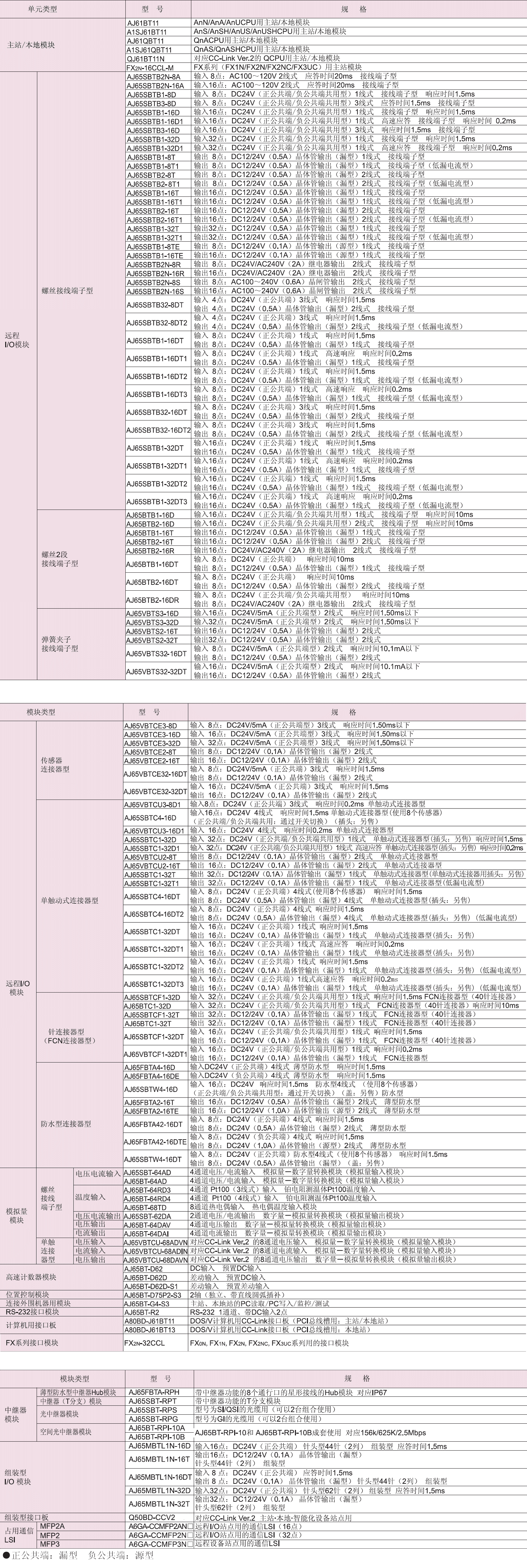 ■ AJ65系列最大范围的包容了标准特点、程式执行更快、全面补充了通信功能、适合世界各国不同的电源 以及满足单个需要的大量特殊功能模块,它可以为自动化应用提供最大的灵活性和控制能力。