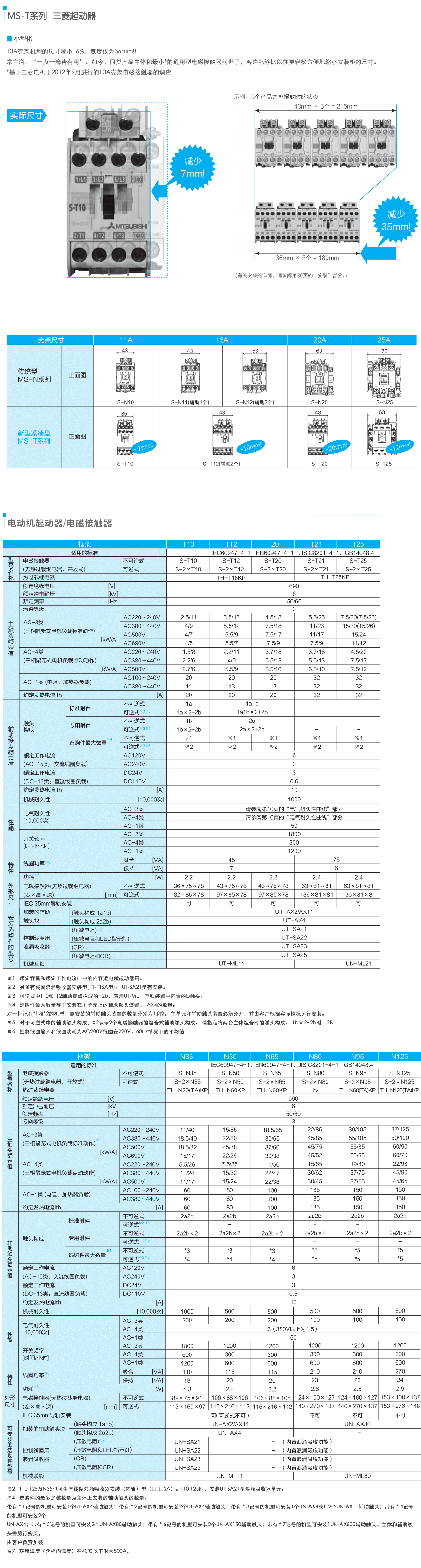 ■ MS-T系列马达起动器的规格具有环境友好性、国际通用性、轻巧性、易用性以及安全性等特点。它们符合众多国际标准的要求,具有可靠性,并支持从配电盘到机器等诸多应用。