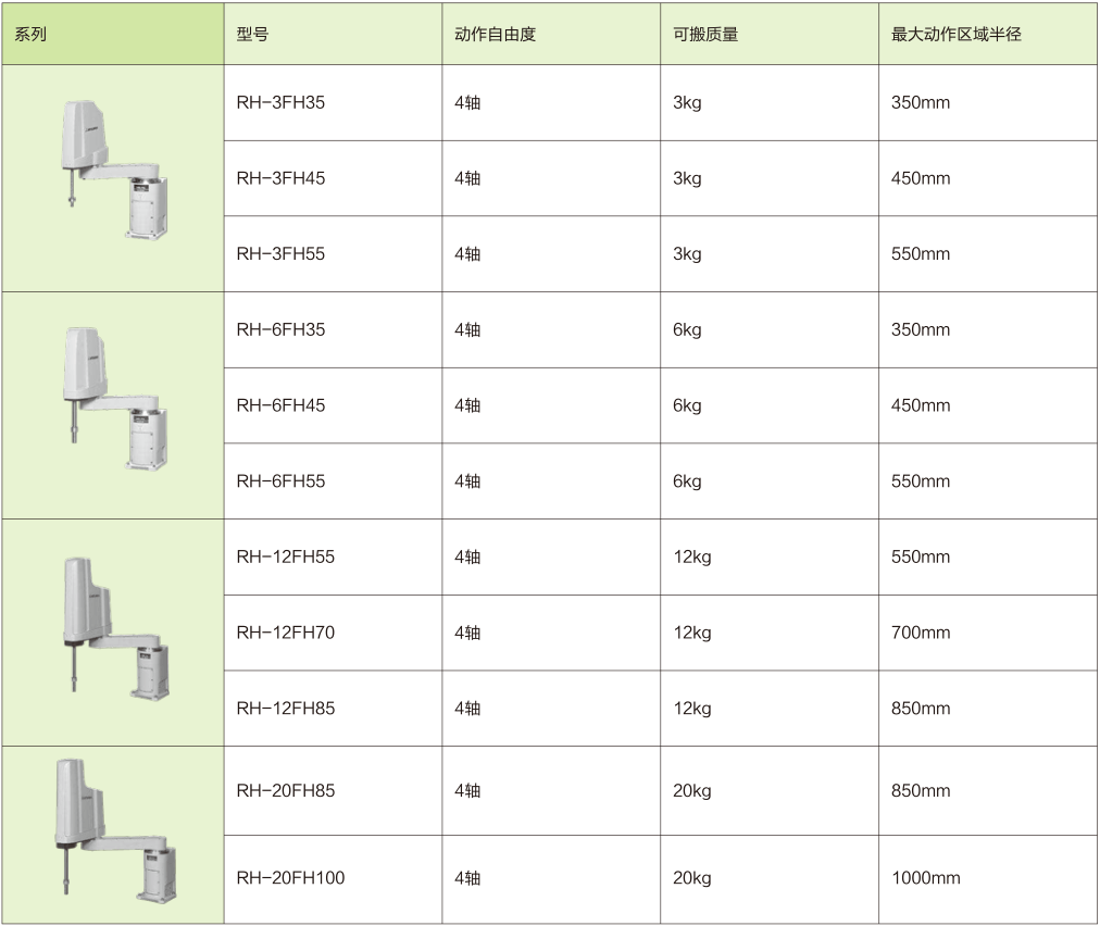 ■ 水平多关节型机器人可以进行广泛的应用 - 小部件装配、重负载处理和包装。